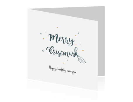 Kerstkaart Merry Christmas met mondkapje