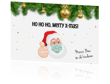 Grappige kerstkaart met kerstman met mondkapje