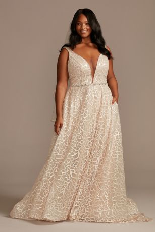 Geometric Sequin Plunge Plus Size Wedding Dress David S Bridal